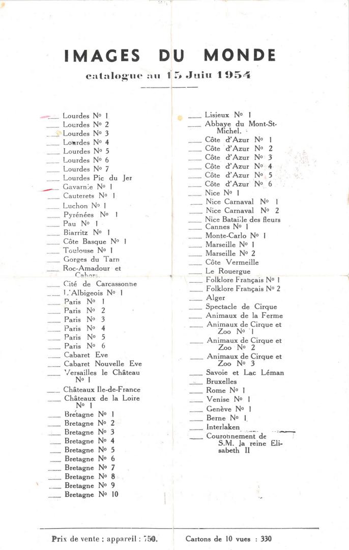CATALOGUE DES CARTES DU 15 JUIN 1954