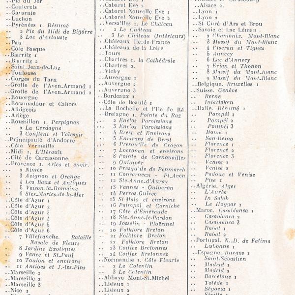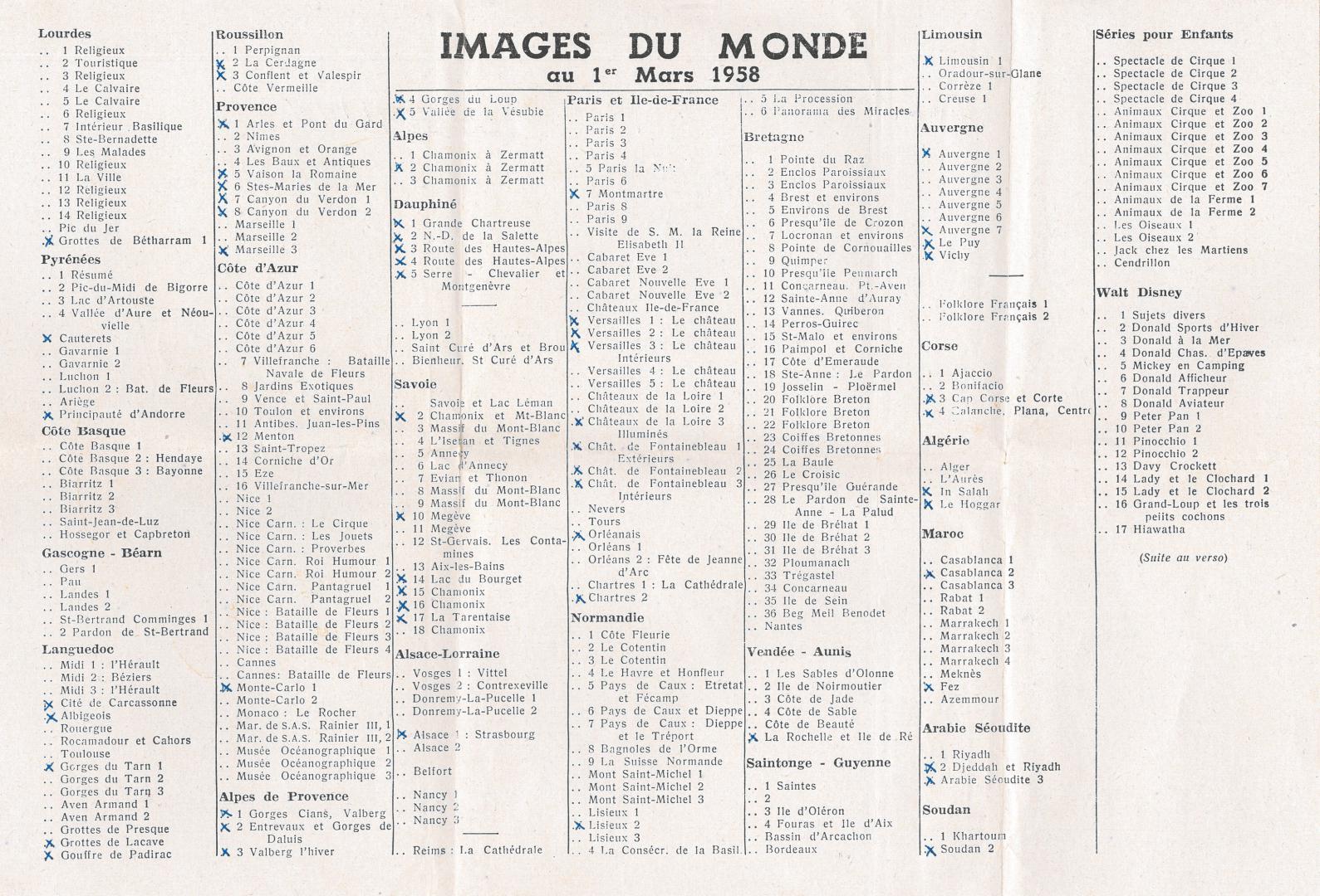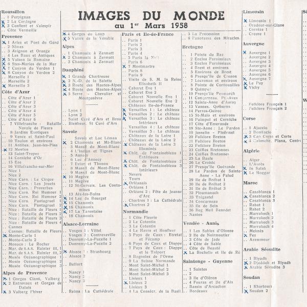 CATALOGUE DES CARTES DU 1er MARS 1958
