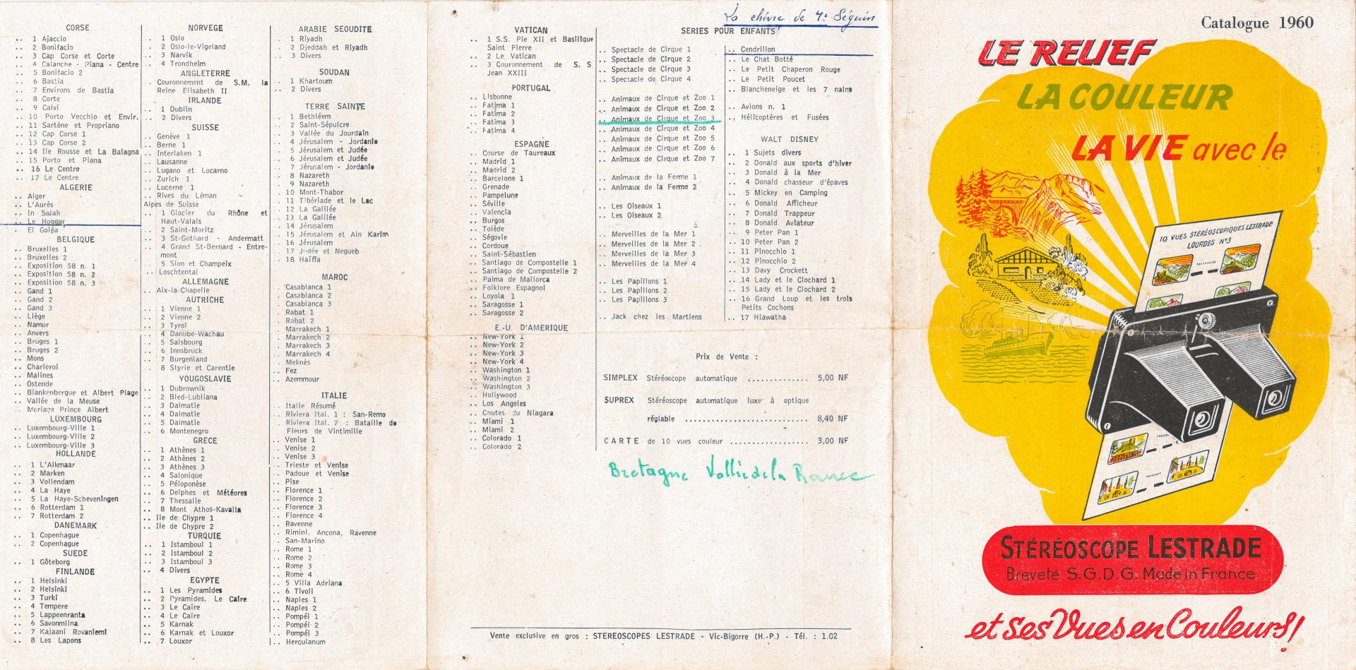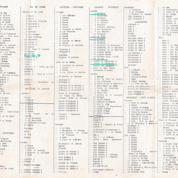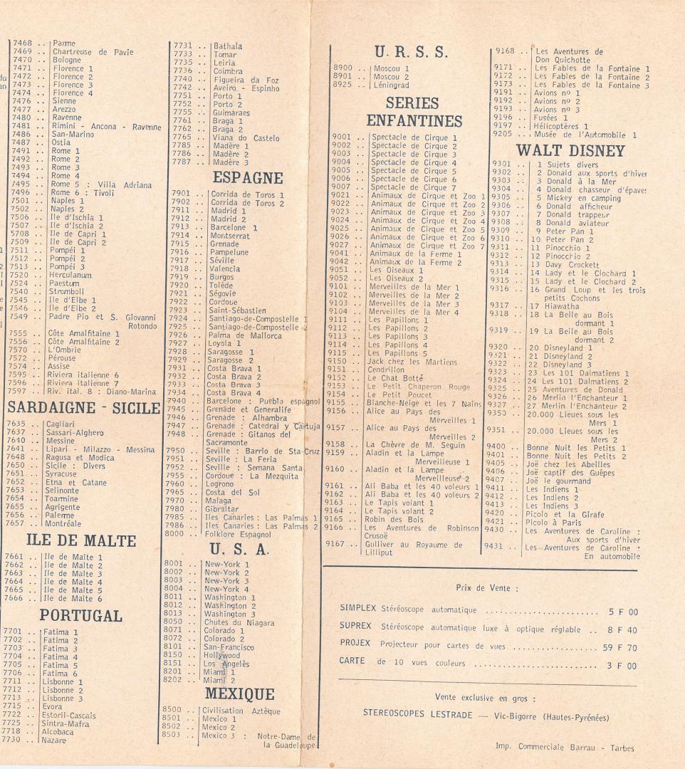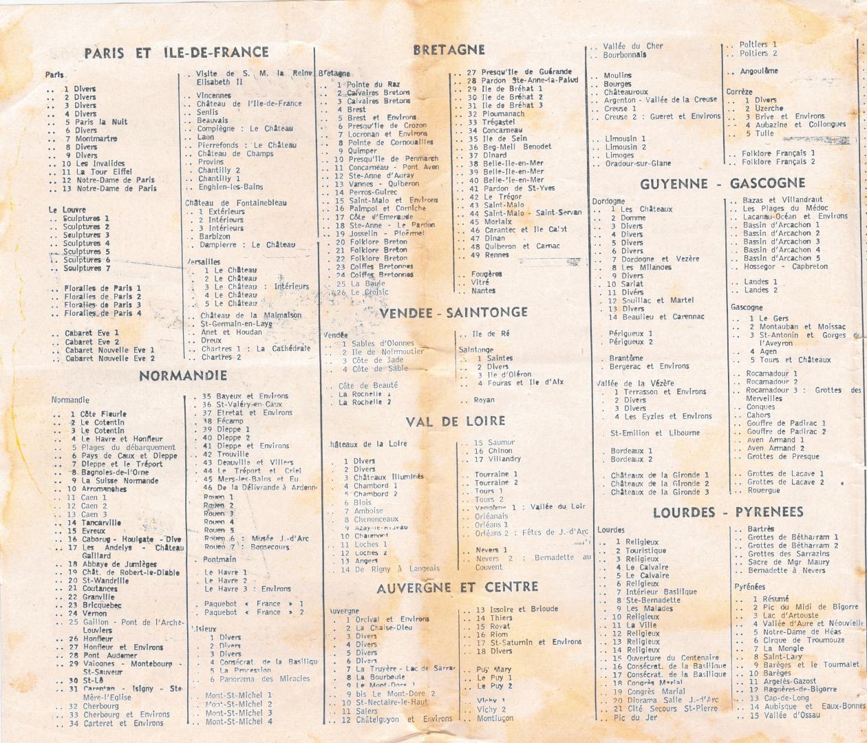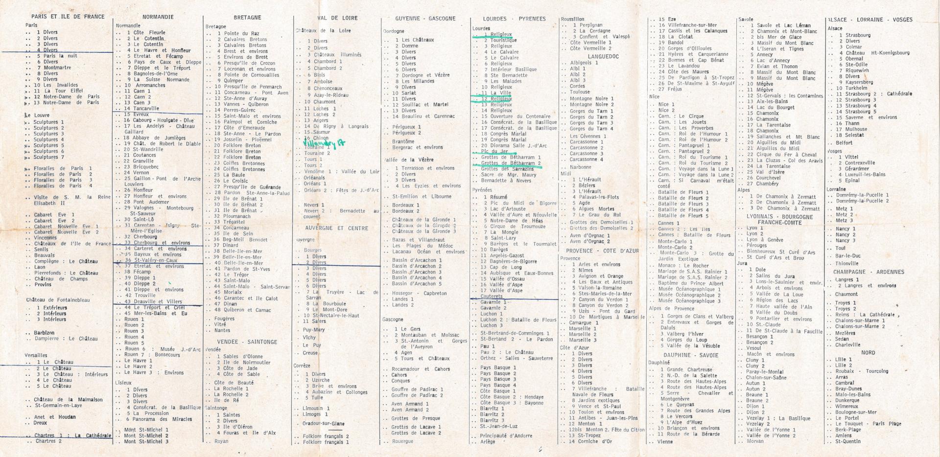 CATALOGUE DES CARTES ANNEE 1960