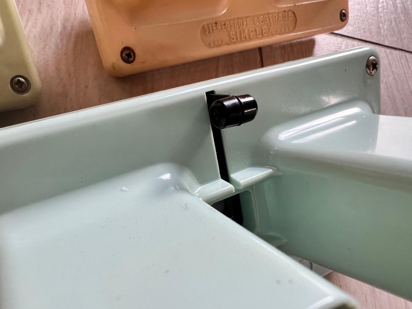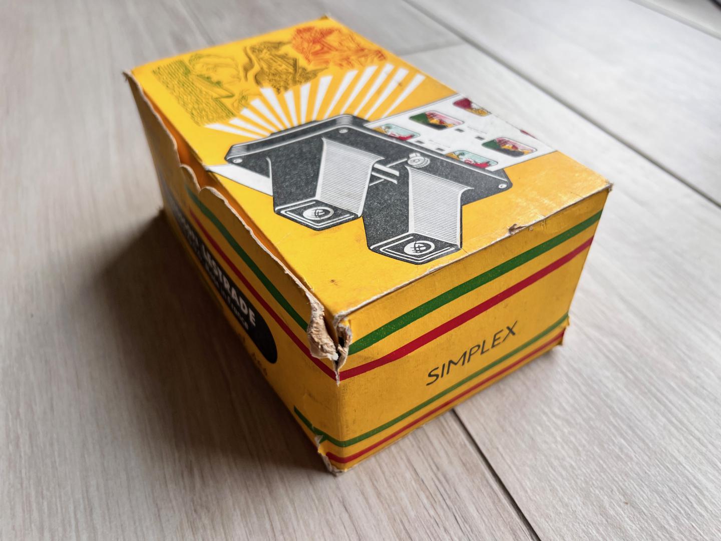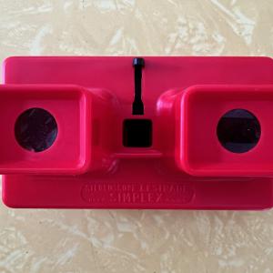 En 1958, le stéréoscope "SIMPLEX" est proposé à la vente, au prix de 500 anciens francs (environ 10€40). Le "SIMPLEX" est en plastique, toujours en deux parties. Les rivets ont disparu au profit de quatre vis. La manœuvre centrale est toujours métallique. Il est proposé en plusieurs couleurs. Le packaging est plus grand mais reste avec le même graphisme.