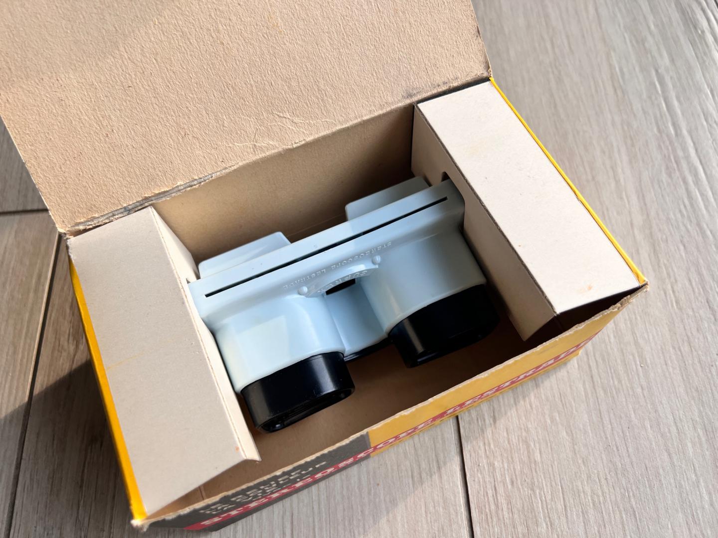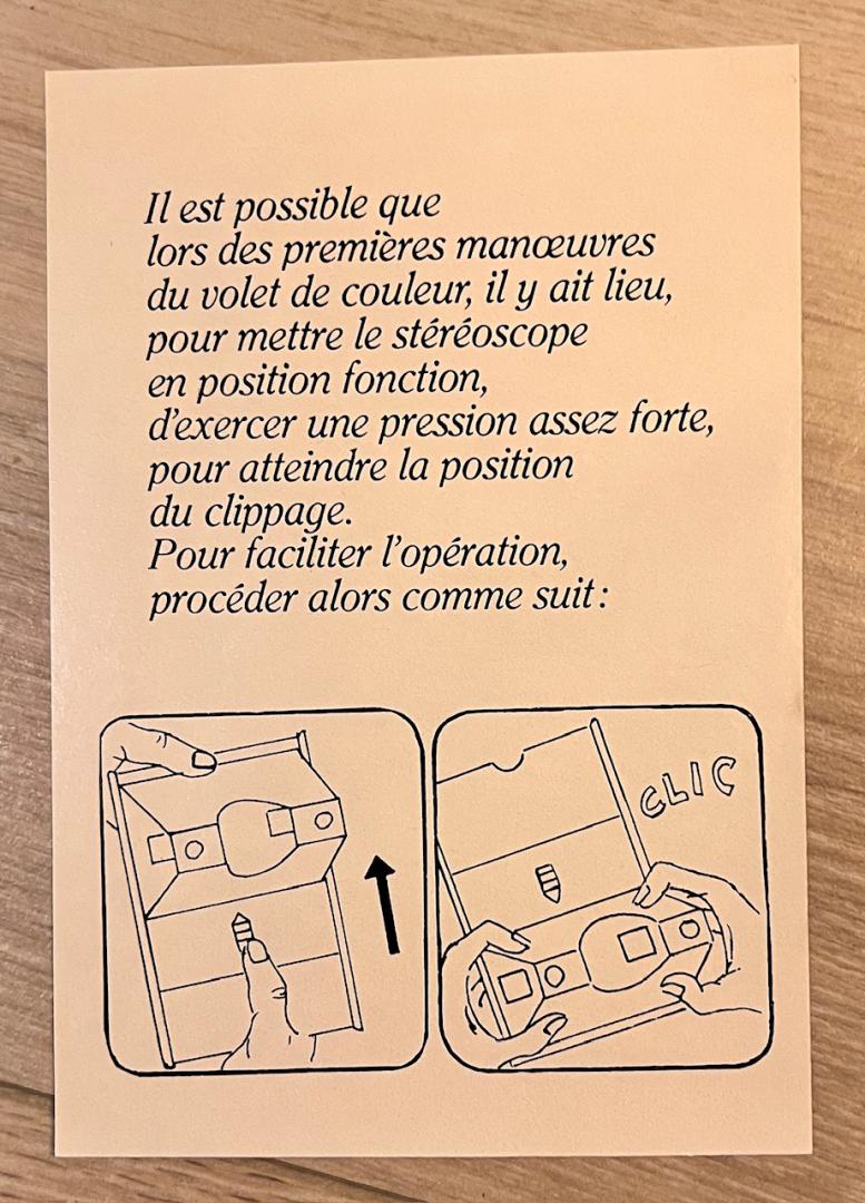 L'appareil standard (en bakélite) est toujours proposé à la vente au prix de 700 anciens francs (environ 14€60), la carte de 10 vues est de 300 anciens francs.(environ 6€30)