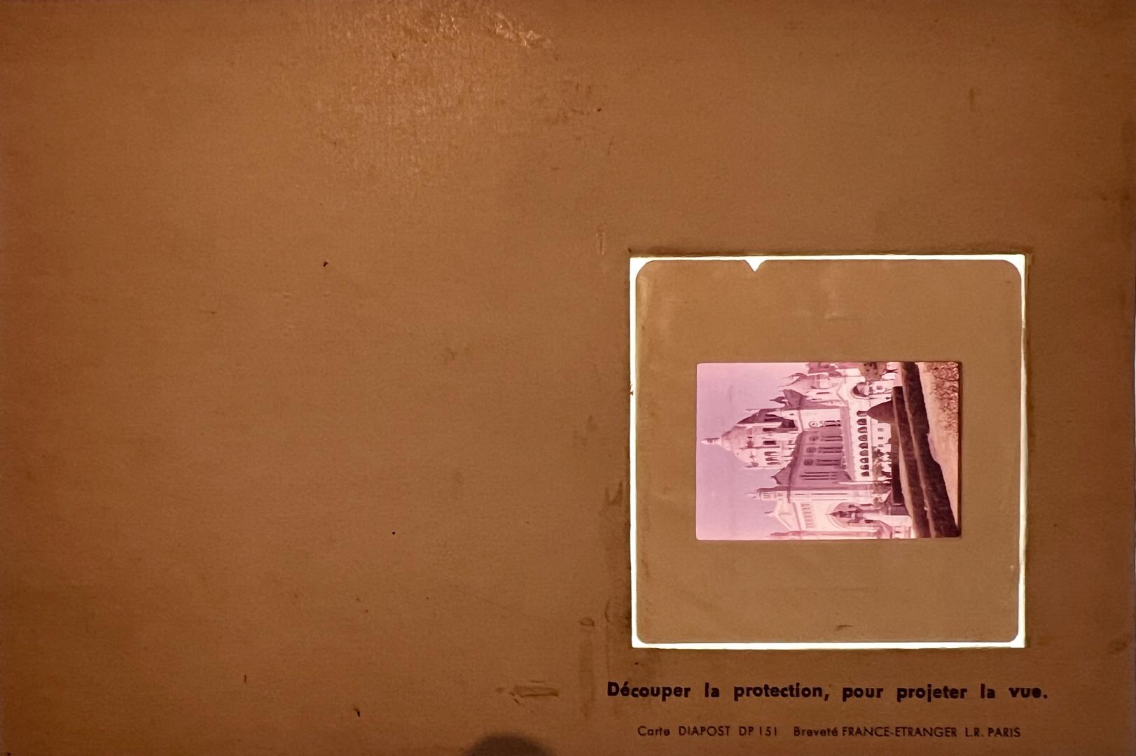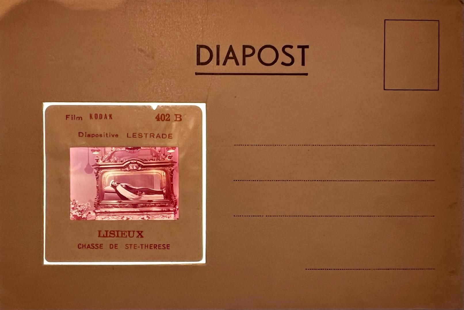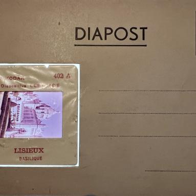Dans les collections de diapositives, il existait des cartes postales intégrant une diapositive insérée dans une pochette. Il suffisait de découper le pourtour de la carte pour pouvoir visualiser la diapositive reçue par voie postale.