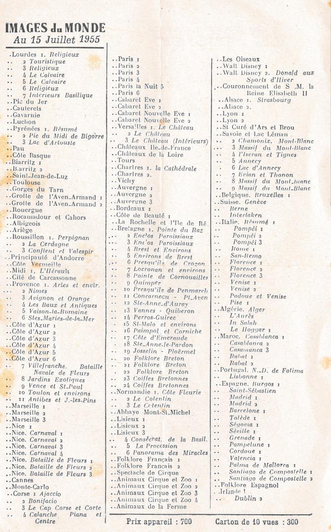 CATALOGUE DES CARTES DU 15 JUILLET 1955