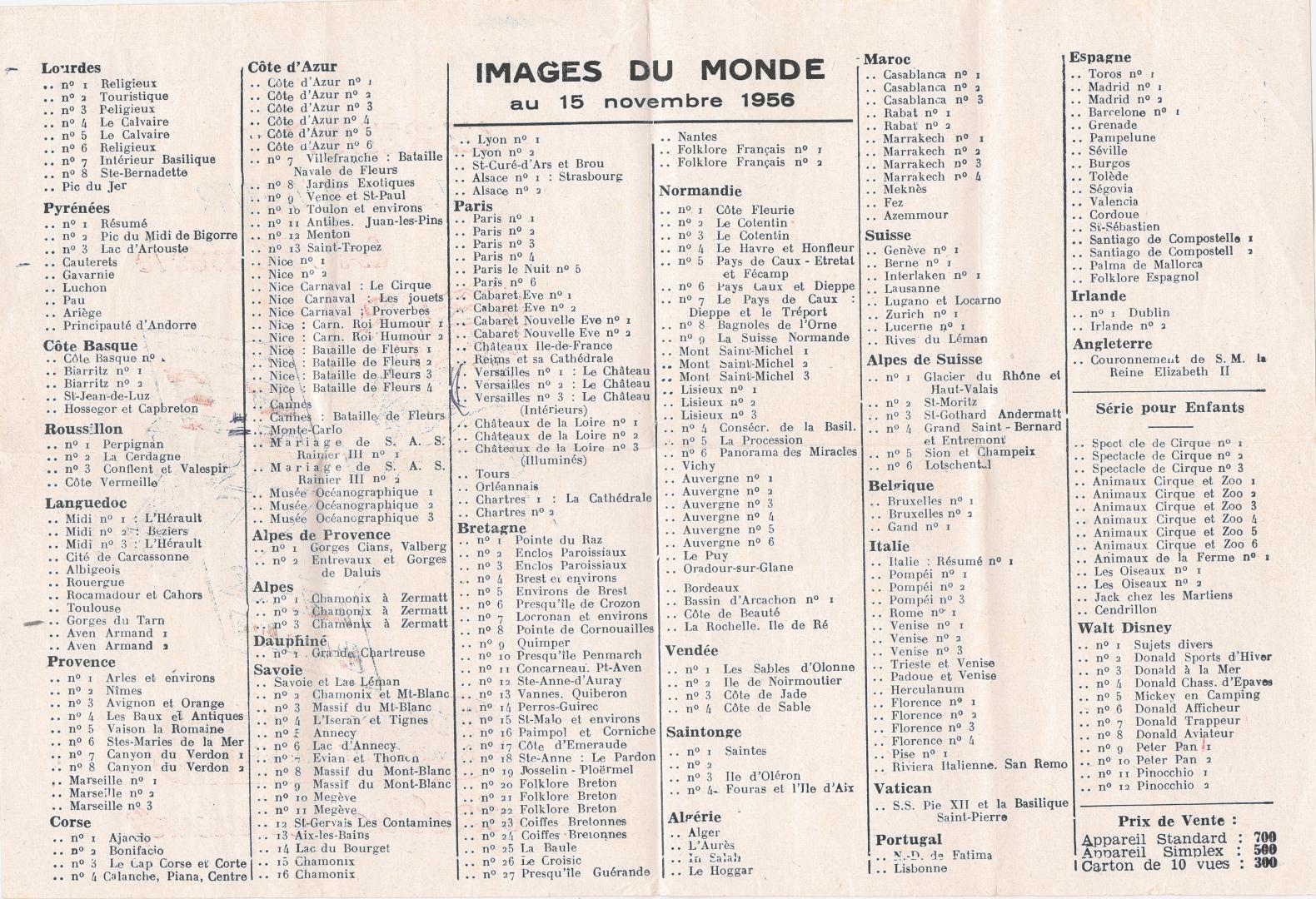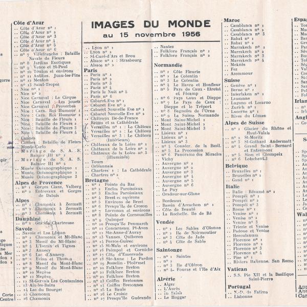 CATALOGUE DES CARTES DU 15 NOVEMBRE 1956