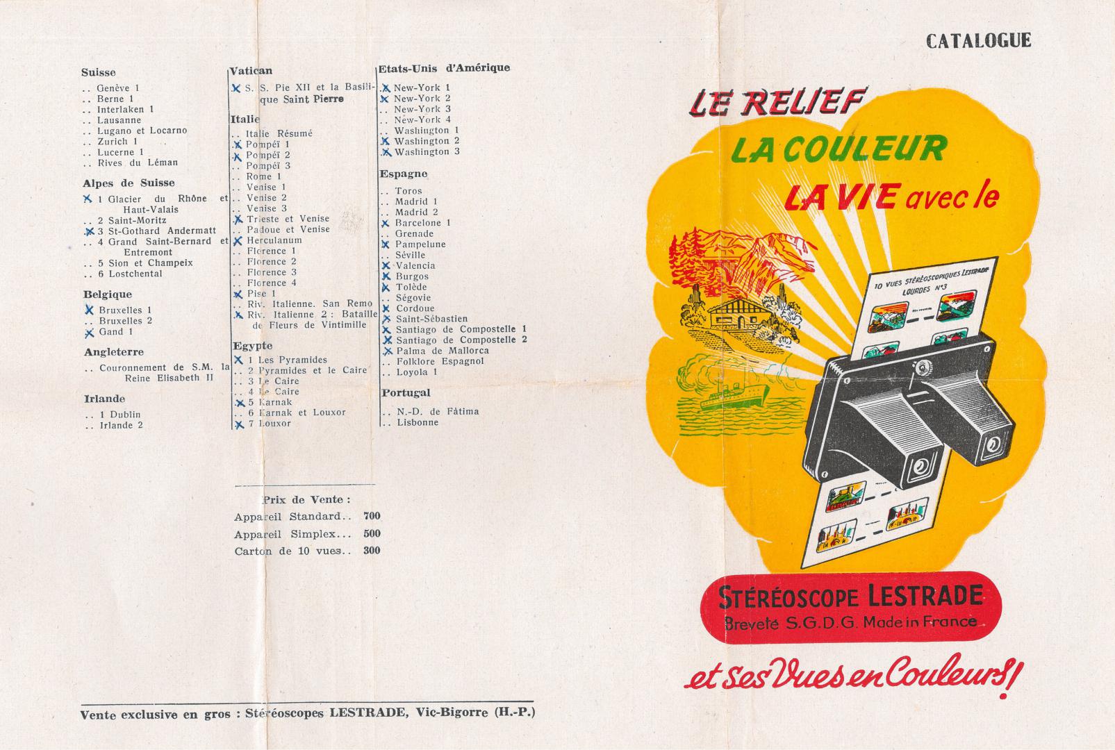 CATALOGUE DES CARTES DU 15 JUIN 1954