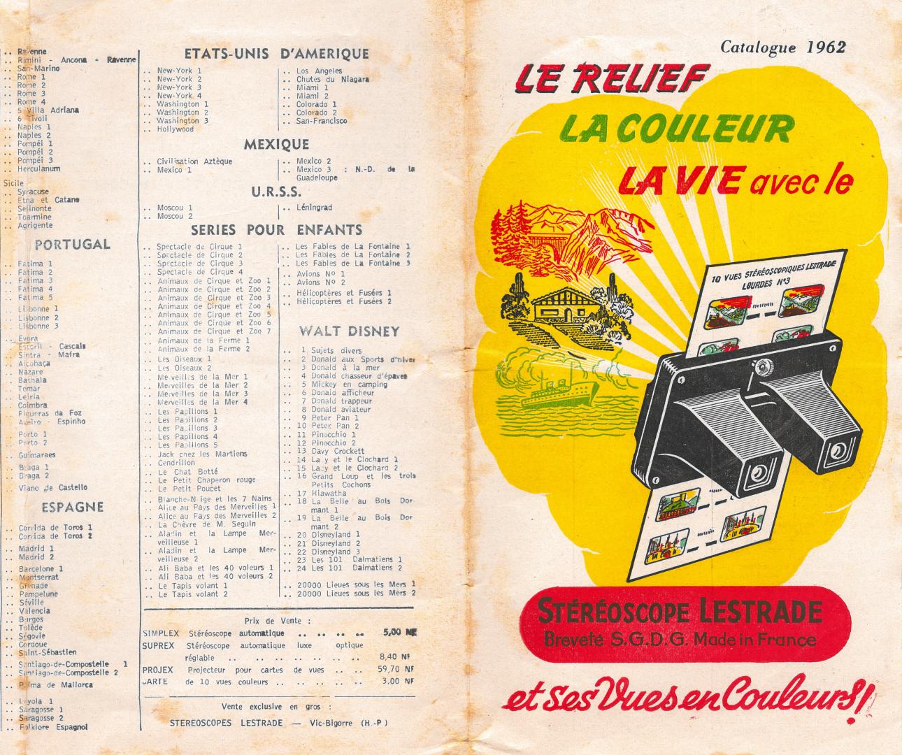 CATALOGUE DES CARTES ANNEE 1962