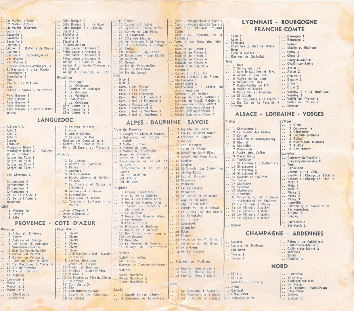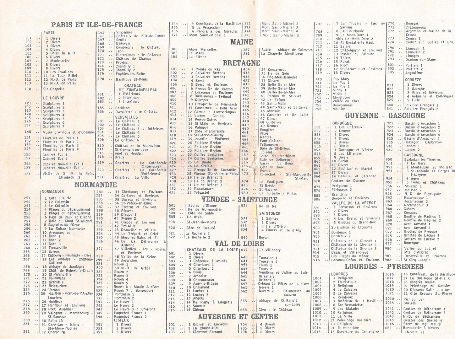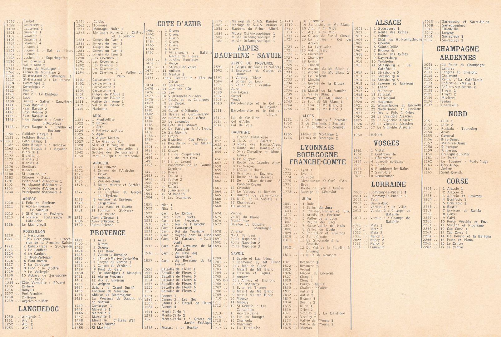 CATALOGUE DES CARTES ANNEE 1965