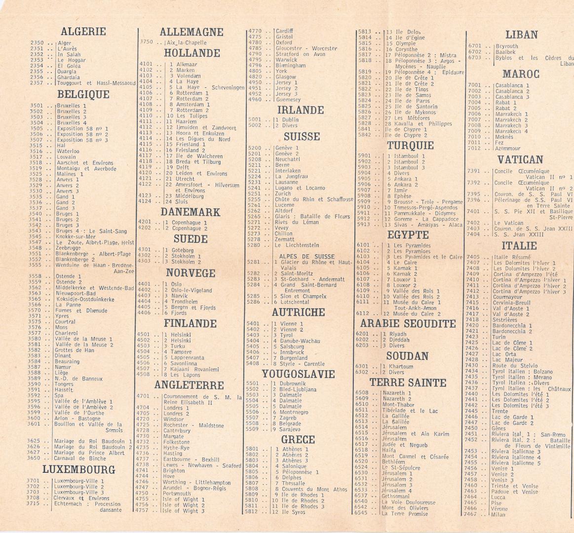 CATALOGUE DES CARTES ANNEE 1960