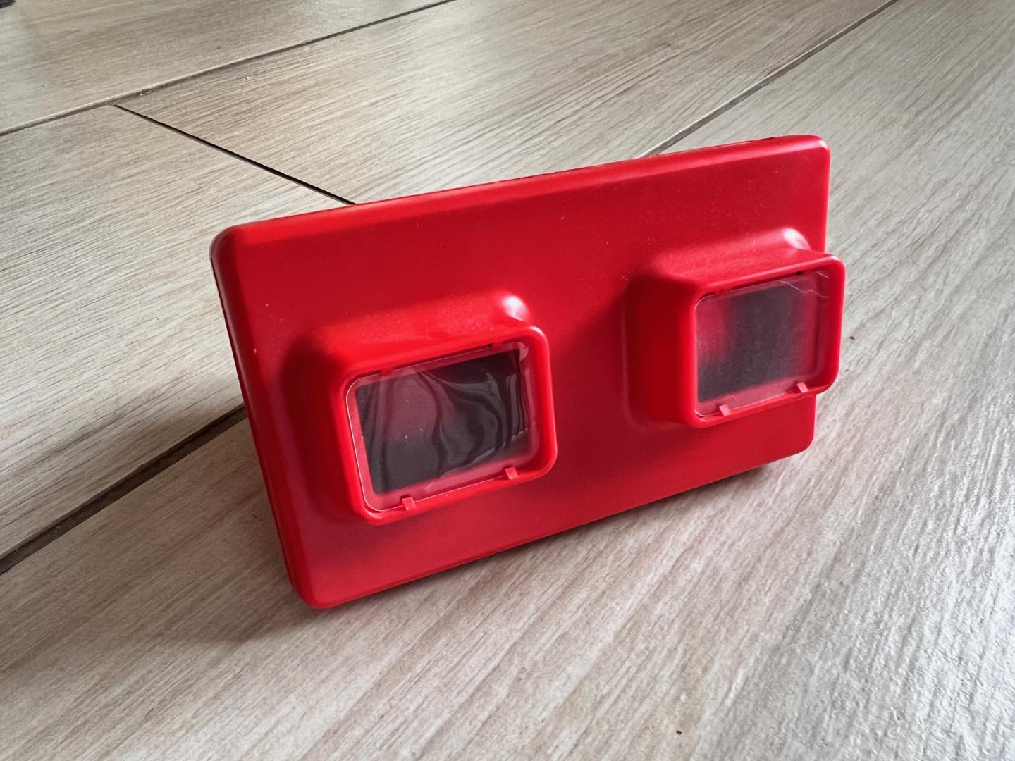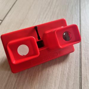 La carte s'insère sous la visionneuse, puis se relève manuellement, image par image. Une fois pliée, l'épaisseur de l'appareil mesure moins d'un centimètre.