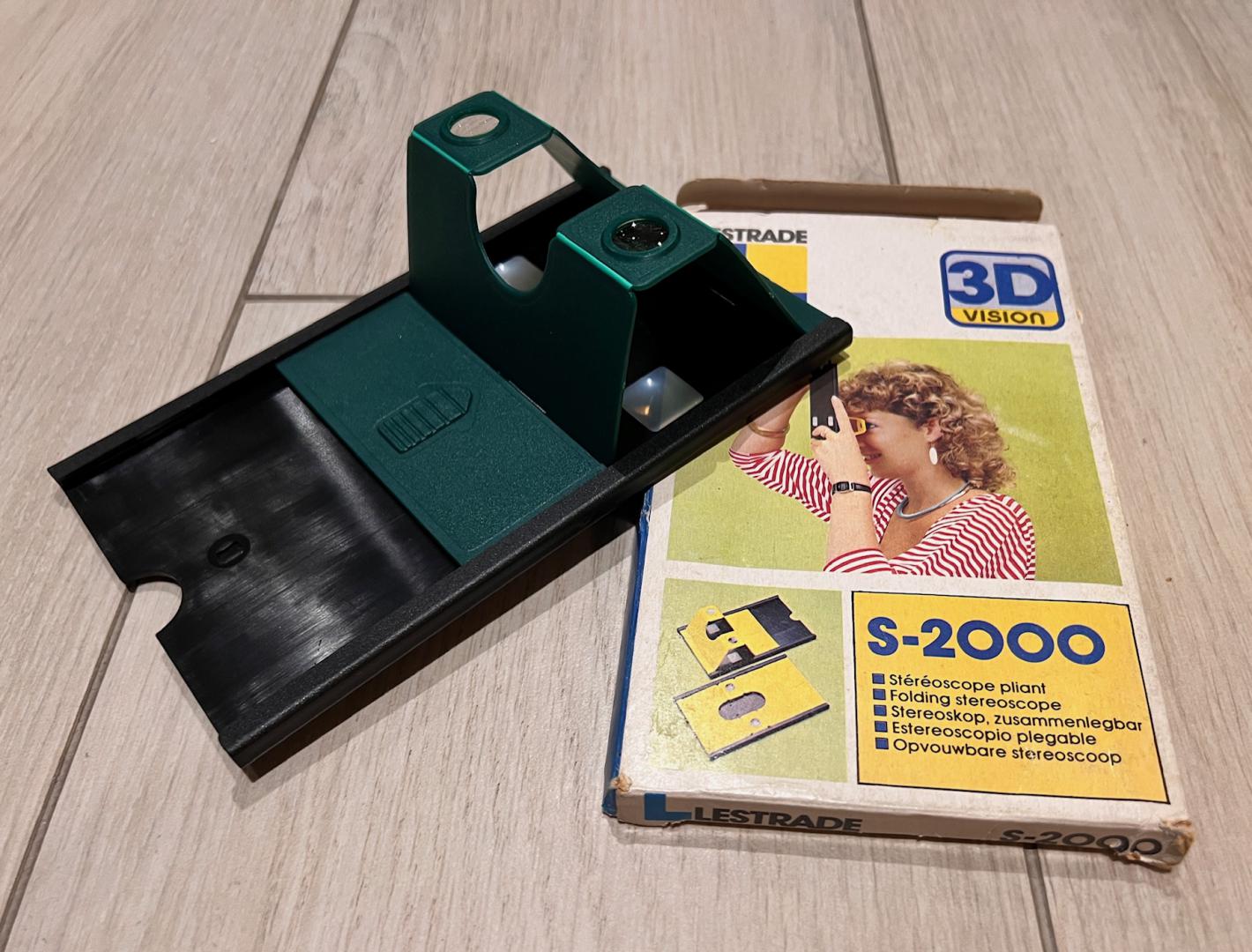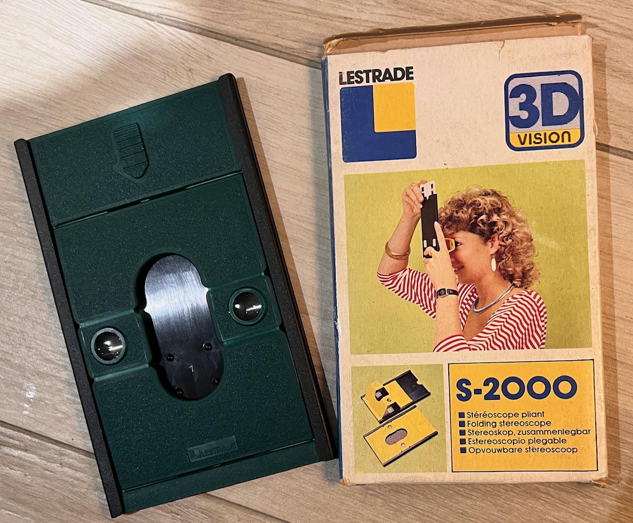 Le "LESTRADE S2000" est un stéréoscope pliant en plastique produit à parti des années 1970.