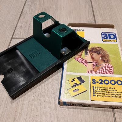 Le "LESTRADE S2000" est un stéréoscope pliant en plastique produit à parti des années 1970.