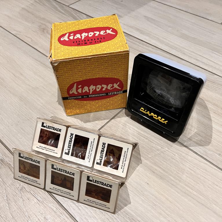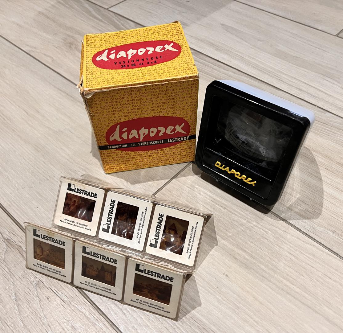 Le "DIAPOREX" permet de visionner les diapositives sur un petit écran, celui-ci fonctionnant avec des piles ou sur secteur.