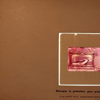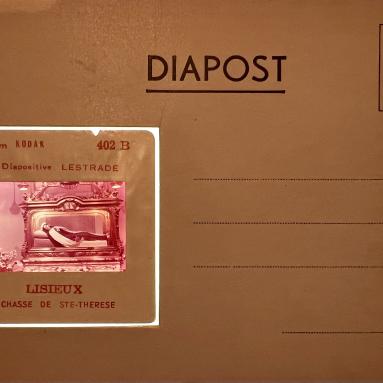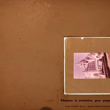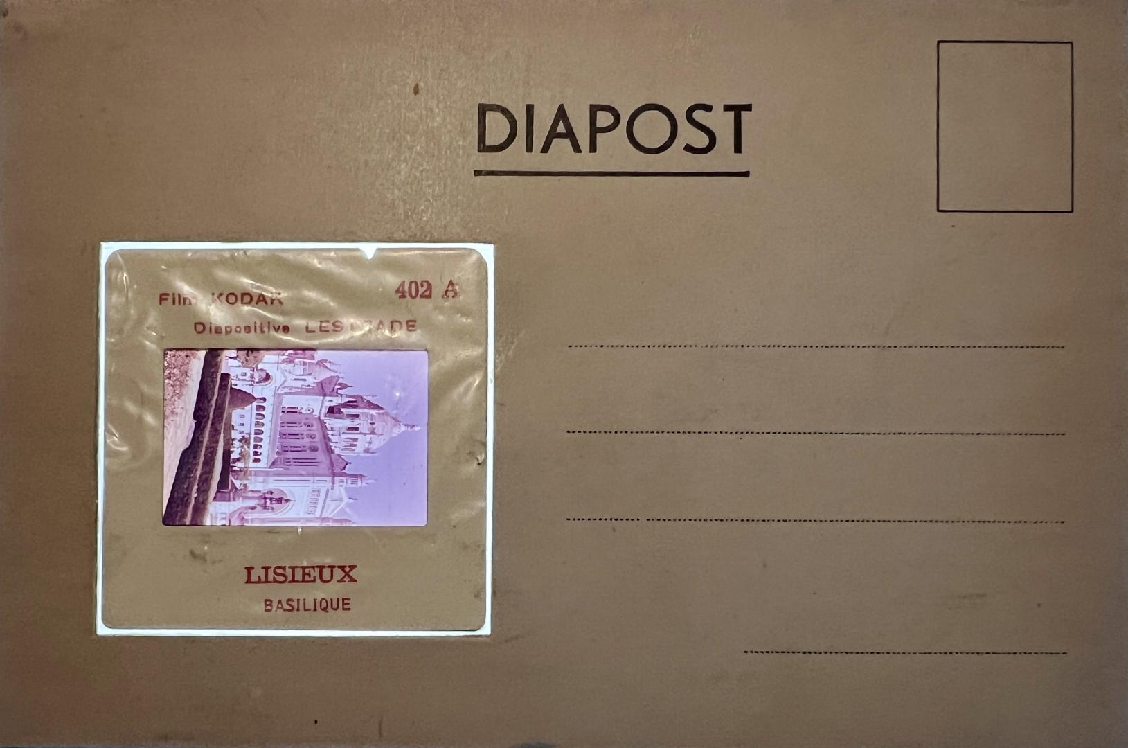 Dans les collections de diapositives, il existait des cartes postales intégrant une diapositive insérée dans une pochette. Il suffisait de découper le pourtour de la carte pour pouvoir visualiser la diapositive reçue par voie postale.